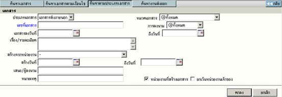 การค้นหางานส่งออก เป็นการค้นหาเอกสารที่ส่งออกไปหน่วยงานต่างๆ