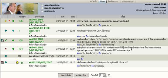 ระบบจะทำงานค้นหารายการเอกสารตามข้อกำหนดที่ผู้ใช้ต้องการ ซึ่งอาจเป็นรายการที่มาจากเมนูงานระหว่างดำเนินการ, งานรอลงทะเบียน, งานตีกลับดึงกลับ , ทะเบียนคุมงานรับเข้า, ทะเบียนคุมงานสร้างส่งภายใน, ทะเบียนคุมงานส่งออกนอกองค์กร (เฉพาะรายการที่หน่วยงานของผู้ใช้ออกเลขที่ภายนอกเท่านั้น ส่วนเลขที่อื่นๆ ที่ไม่ได้ขอออก ระบบจะไม่สามารถค้นหาได้)