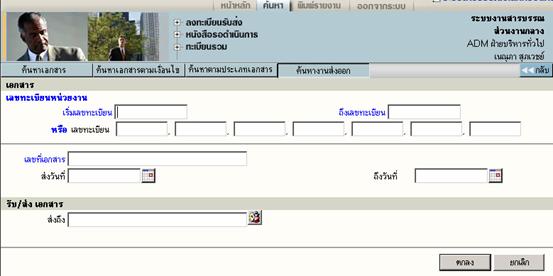 เมื่อต้องการค้นหาเอกสารในตะกร้าหน่วยงานของตนเอง สามารถทำได้โดยการกด เมนู ค้นหา ระบบเปิดหน้าจอ ค้นหาทั่วไปซึ่งผู้ใช้สามารถเลือกการค้นหาด้วยหัวข้ออื่น