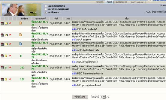 ระบบจะแสดงผลการค้นหา เอกสารทุกรายการในทุกหน่วยงานที่ได้รับเอกสารนั้นๆ