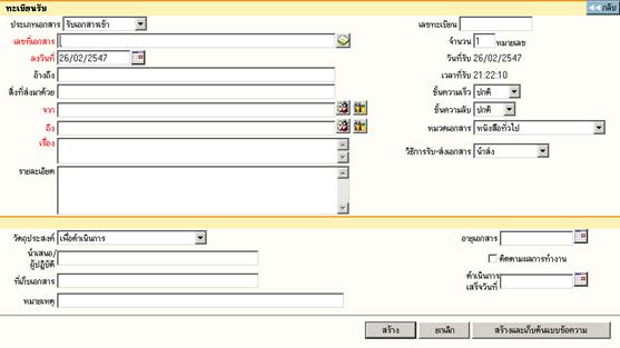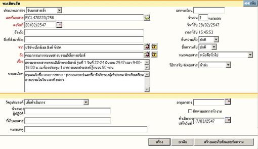 แล้วป้อนรายละเอียดอื่นๆต่อไปเพื่อลงรับเอกสาร