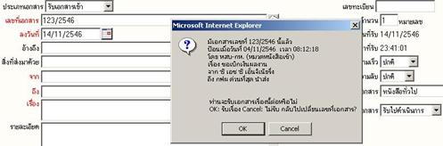 หากพบว่าเป็นเรื่องเดียวกัน ผู้ใช้สามารถกดปุ่ม OK ในหน้าจอนี้เพื่อลงรับเอกสารโดยไม่ต้องป้อนรายละเอียดที่เหลือได้เลย