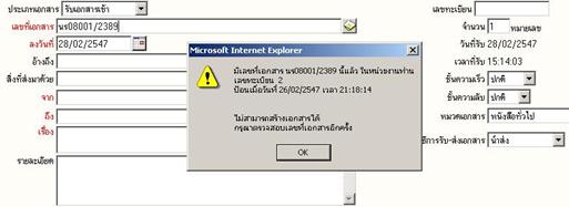 ระบบจะทำการตรวจสอบเลขที่ เพื่อตรวจสอบเอกสารซ้ำซ้อน จะสังเกตได้ว่า